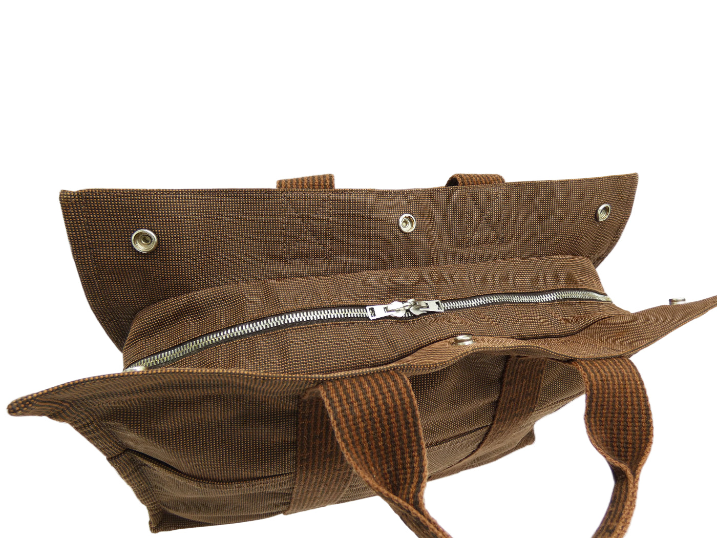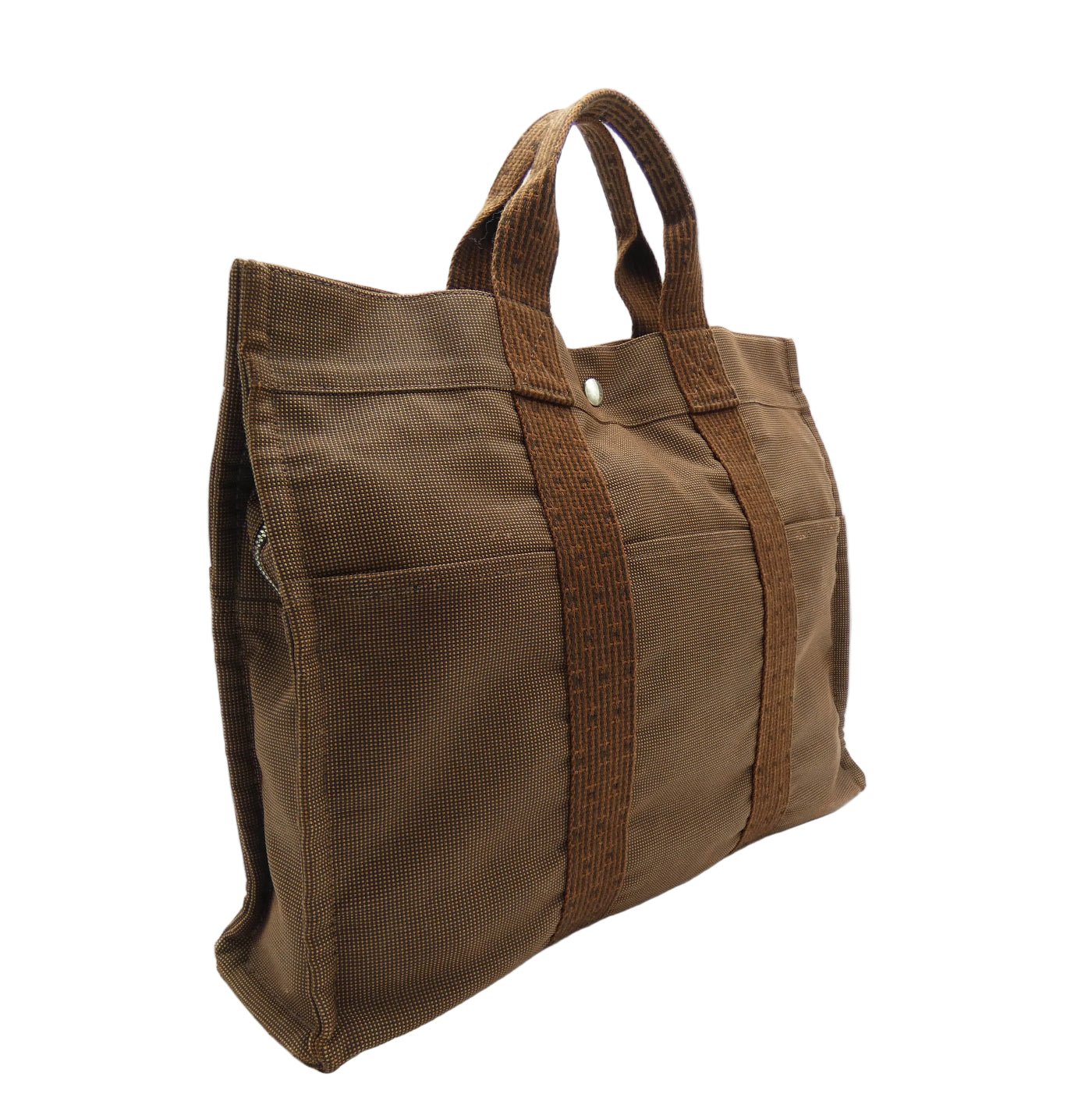 OA Fashion Feedback: Very stylish Herline MM large tote from Hermès. This is made from durable canvas with silver tone Hermès branded snaps and zips. The double zipped top opens to a spacious complimentary interior with a zipped pocket. This tote would be the height of fashion for business or leisure travel, from Hermès .