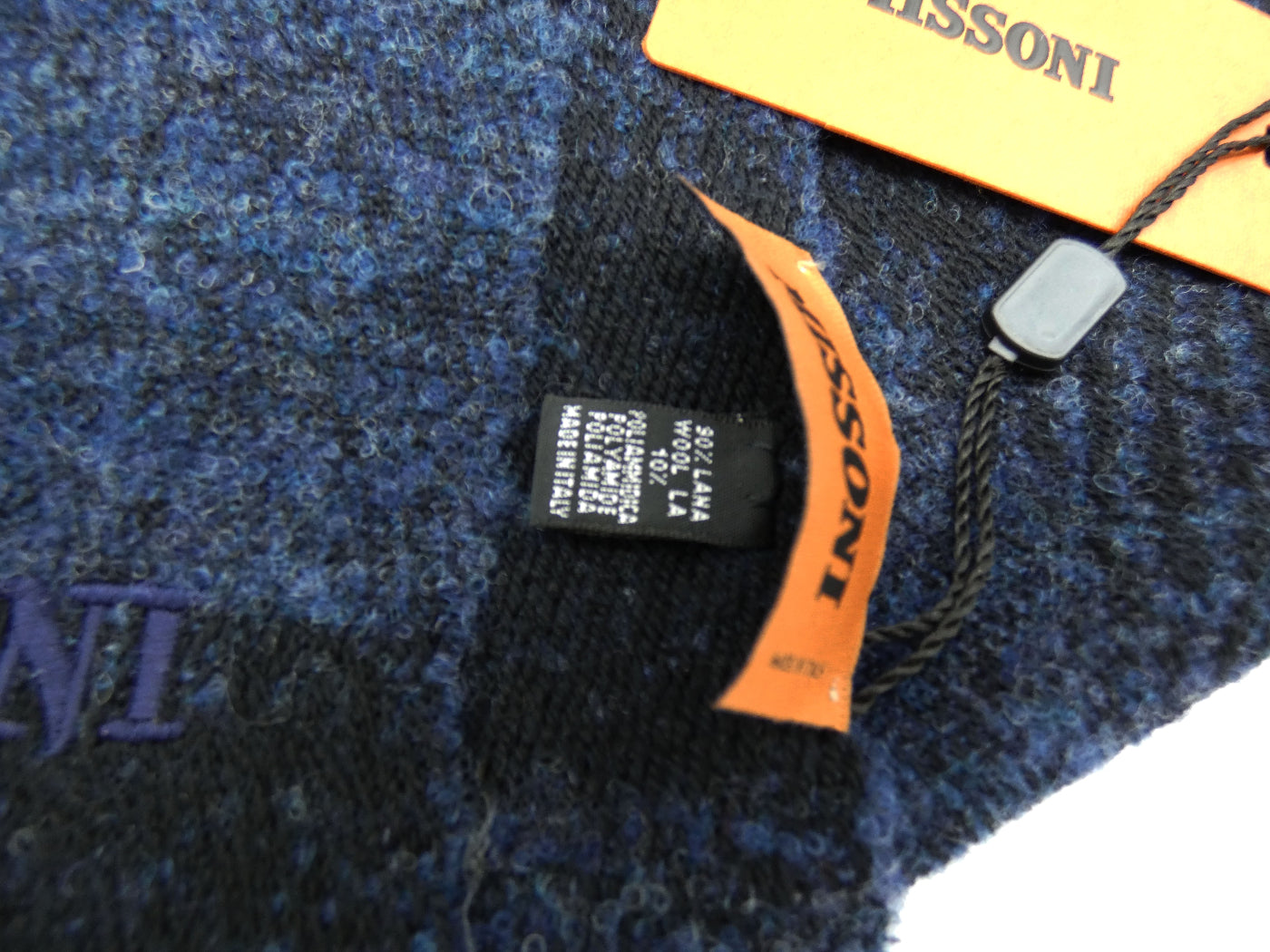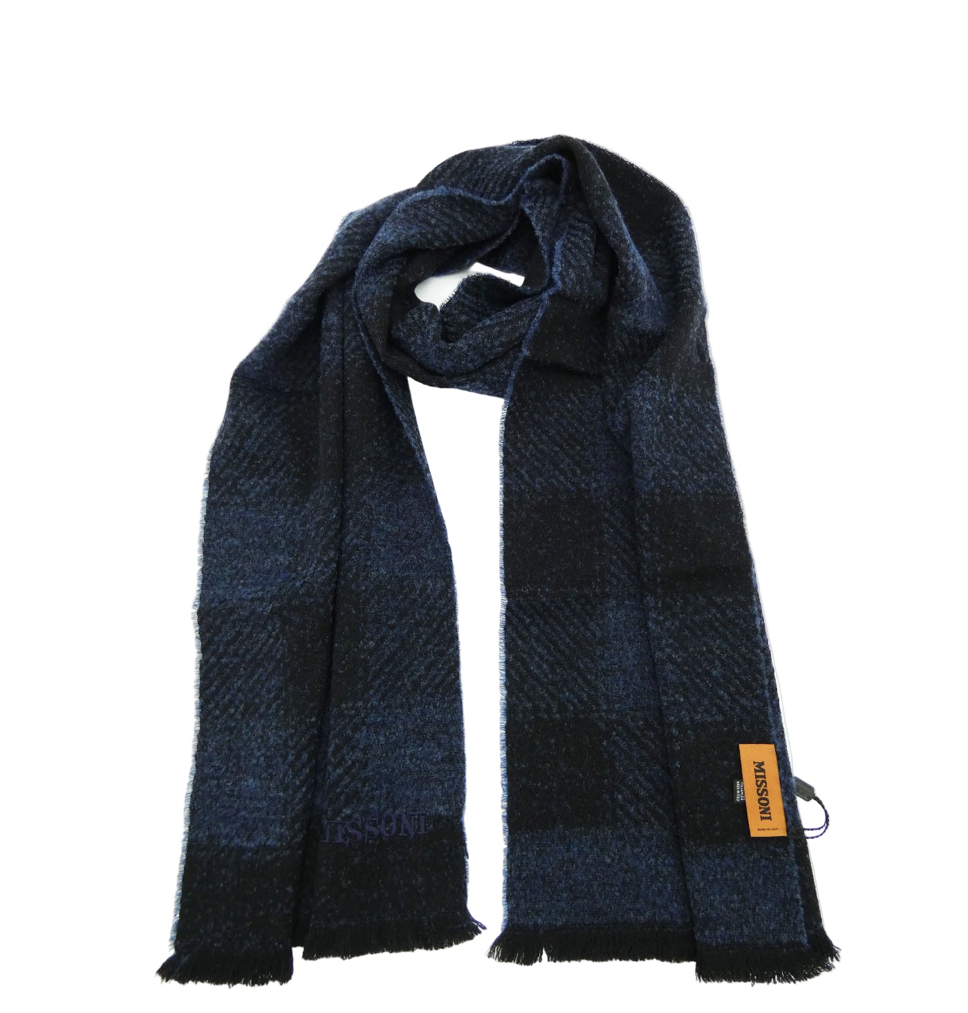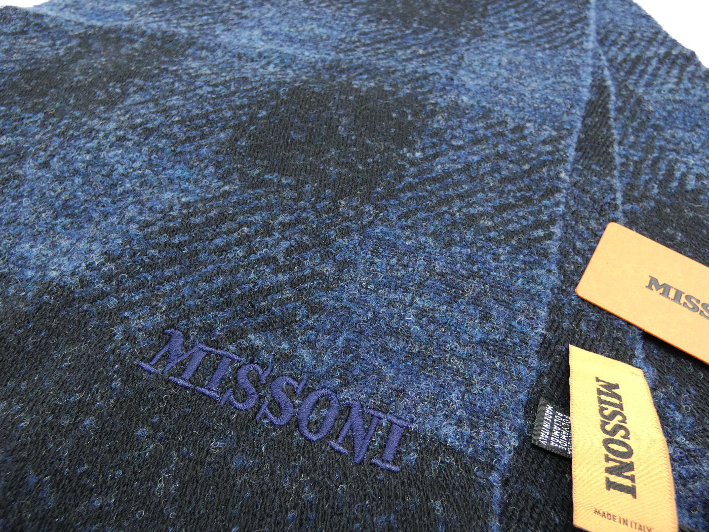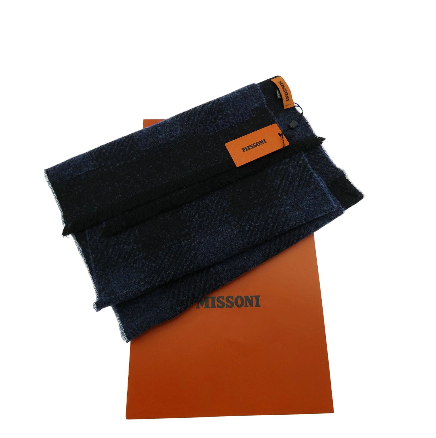 Knit in Italy, this warm, thick Missoni navy and black plaid reversible scarf is a lovely addition to any wardrobe, and will go with anything. Great for yourself, or as a thoughtful gift, to show off what great taste you have, from Missoni.